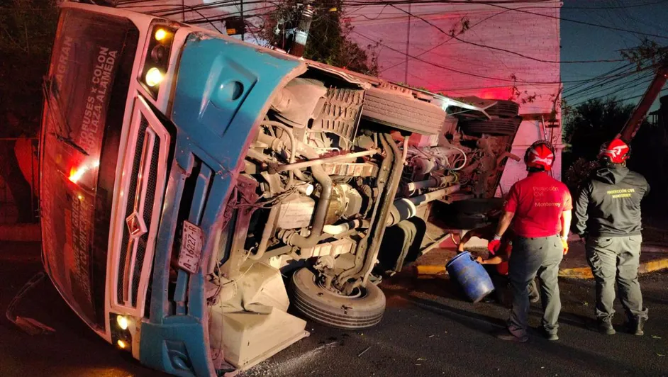 Un choque entre dos rutas urbanas llevó a una volcadura en la avenida Arteaga, en el corazón de Monterrey. Este impresionante accidente de camiones ocurrió la mañana del pasado martes, a la altura de la calle Platón Sánchez, y dejó como saldo a siete personas heridas.