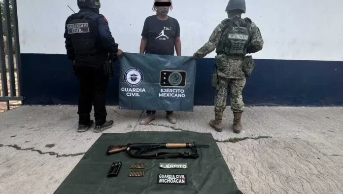 Elementos del Ejército mexicano, la Guardia Nacional y la Guardia Civil llevaron a cabo la detención de Raúl ‘N’, acusado de extorsionar a productores de limón y que supuestamente trabajaba bajo las órdenes de Juan José Farías, conocido como El Abuelo, en Buenavista, Michoacán.