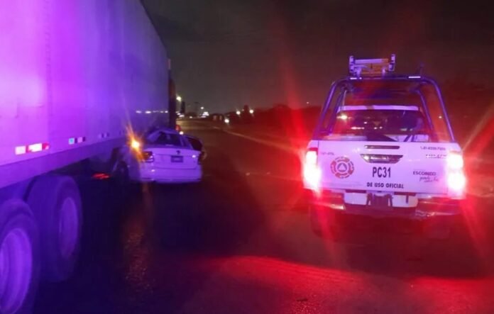 Al lugar acudió el personal de Protección Civil de Nuevo León, quienes encontraron un vehículo tipo Vento de color blanco, que había quedado incrustado bajo la caja de un tráiler.
