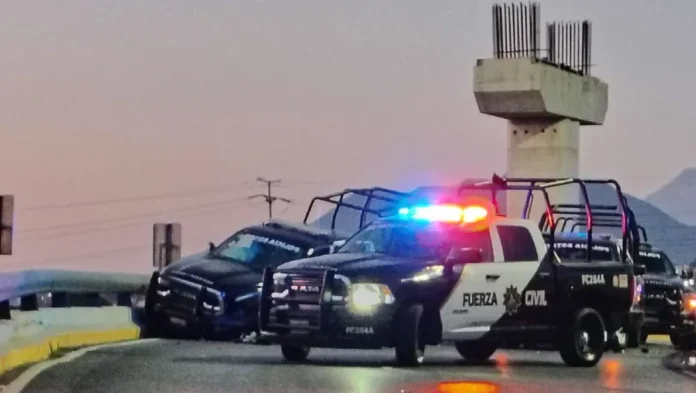 Al intentar hacerlo, los oficiales se trasladaron por el puente que conduce a la calle Juan Zuazua, pero al llegar a la altura de Constitución, la patrulla perdió el control y se estrelló contra el muro de contención. Tras el incidente, al menos cuatro camionetas de Fuerza Civil llegaron al lugar, cerrando el paso por la calle Zuazua hacia la gran plaza, lo que obligó a los vehículos a desviar su ruta hacia la gaza que conecta con la lateral de la avenida Constitución.